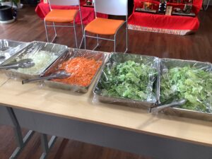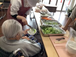 栄養課職員が、サラダをお望みの分量を盛り付けます💛